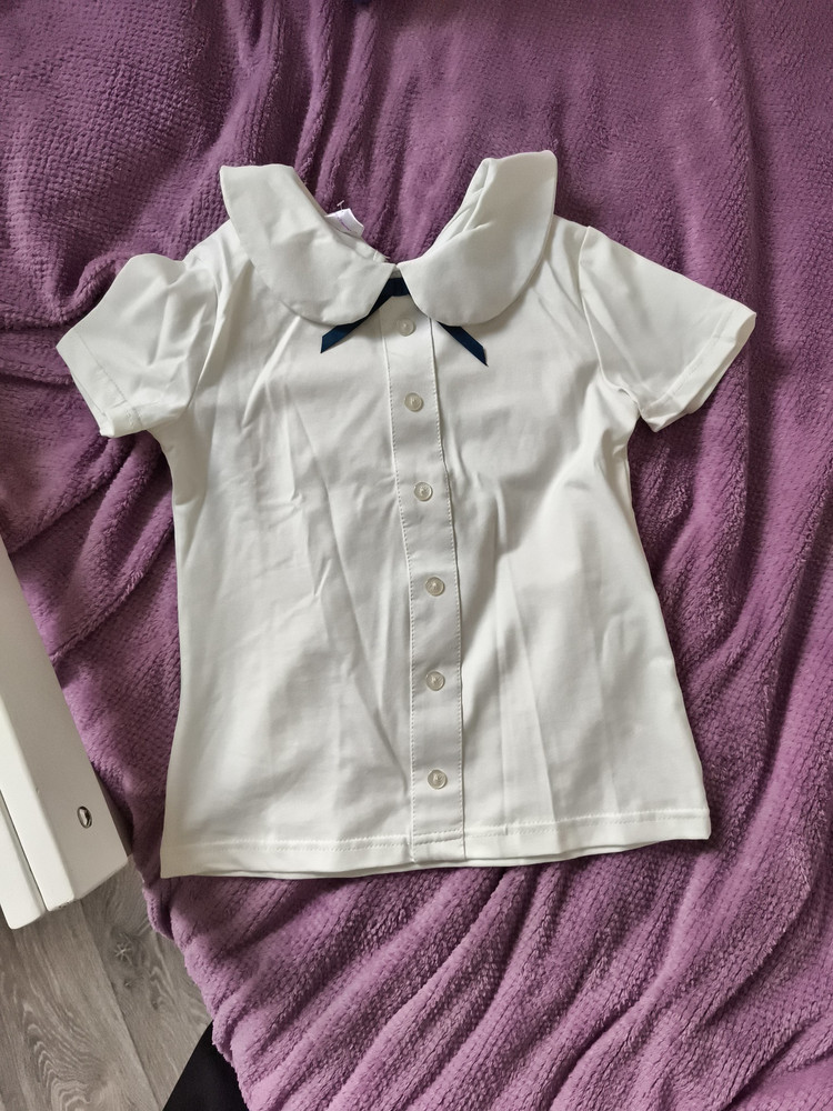 Школьная трикотажная блузка для девочки с коротким рукавом — отличный выбор для учебных будней и праздничных мероприятий. Модель выполнена из мягкого кулирного полотна с добавлением эластана (95% хлопок, 5% эластан), плотностью 200 г/м². Ткань приятна к телу, хорошо тянется и сохраняет форму. Блузка имеет приталенный силуэт, подчёркивающий фигуру, аккуратный классический воротник и декоративную планку с пуговицами, придающую нарядный вид. Короткий рукав обеспечивает комфорт и свободу движений. Блузка легко сочетается с юбками, брюками и сарафанами школьной формы, подходит для повседневной носки и торжественных случаев.