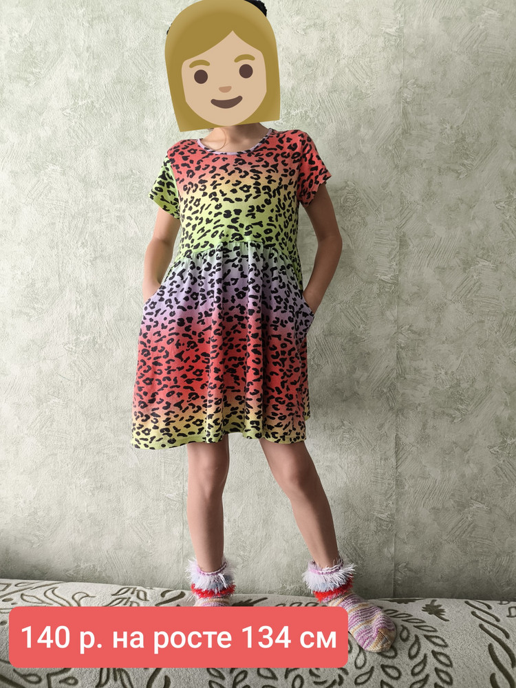 Купили это платье год назад, в августе 2024. Размер 134-140 на рост 127 см был немного свободным и до колена. Лето закончилось, платье превратилось в любимое домашнее. Не лежало, носили всё это время дома. Сейчас октябрь 2025, швы целые, ничего не перекосилось, цвет тоже практически не изменился. Катышков нет, хотя стираю достаточно часто, есть еле заметный пушок, на фото. Если честно, приятно удивлена, ничего собенного от платья не ожидала. Поэтому и зашла написать отзыв. Единственное, на мой взгляд, размер 140 на рост 134 уже немного коротковат, на 140 будет точно короткий. Лучше брать с запасом по длине.